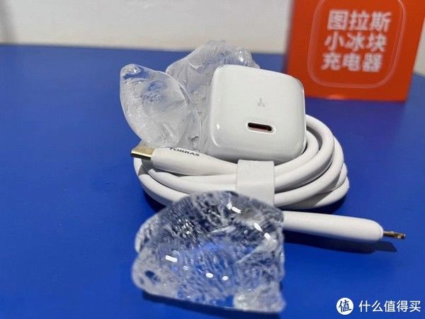 这块充电器,使用的是透明光面的白色聚碳酸酯外壳,里面包裹的是灰白色的PC材质,这种设计,看上去像一个裹着冰层的充电器,手感也非常顺滑。