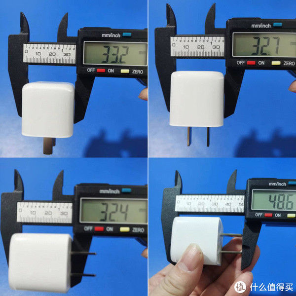 充电器实测尺寸为:33.2mmX32.7mmX48.6mm,不含插头部份为33.2mmX32.7mmX32.4mm,非常接近正方体。