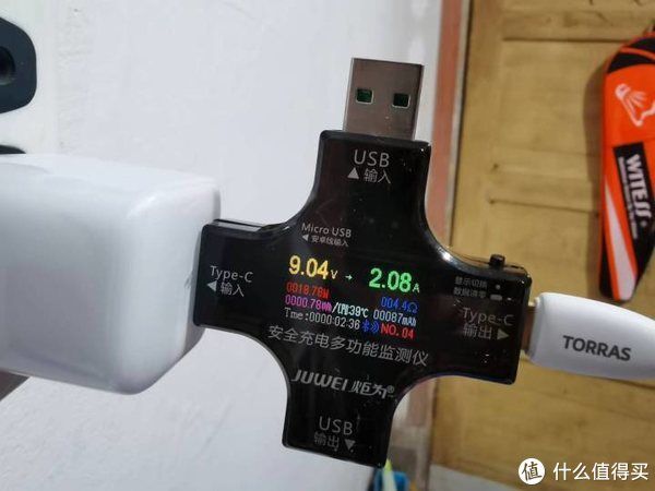 充电功率测试使用的是炬为充电多功能监测仪,可以同时实时检测电压、电流和充电功率。